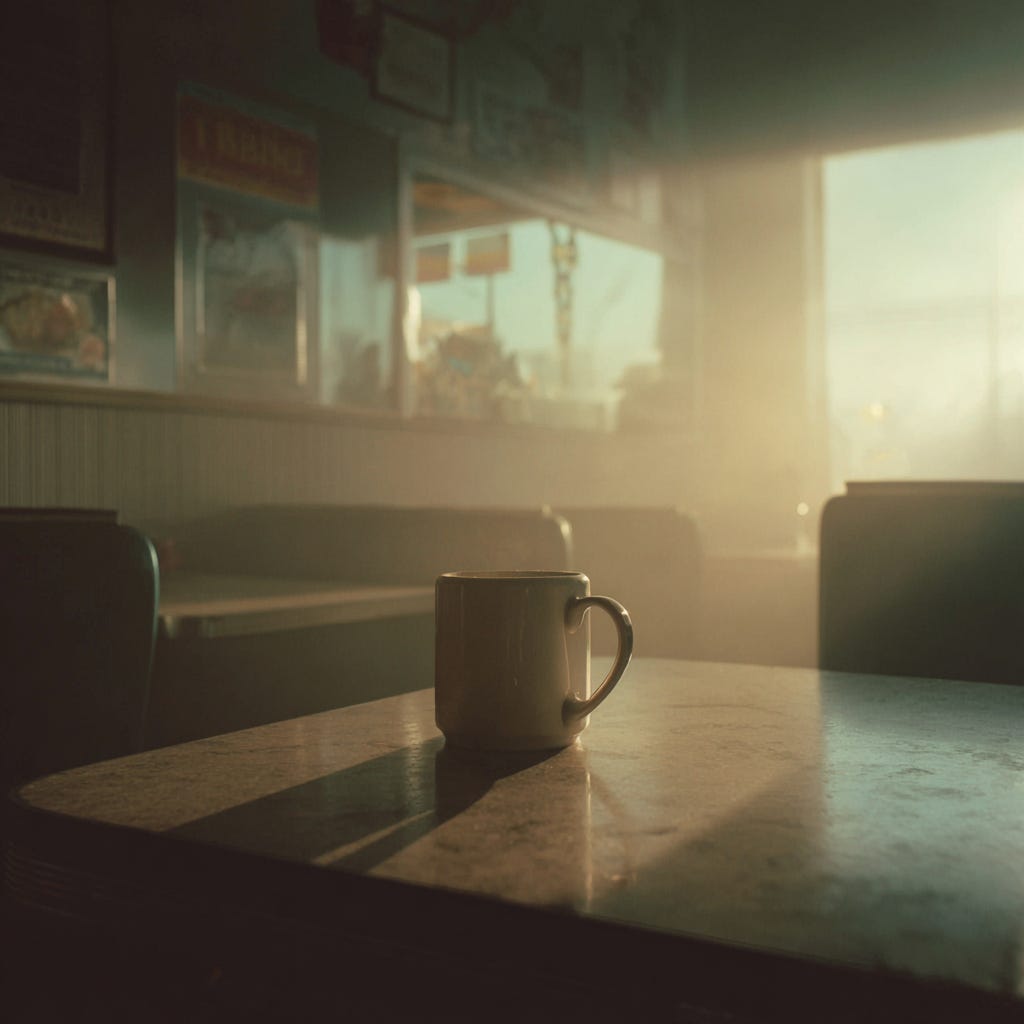 We met in a diner on the outskirts of a midsize American city. She ordered coffee and didn’t touch it.
