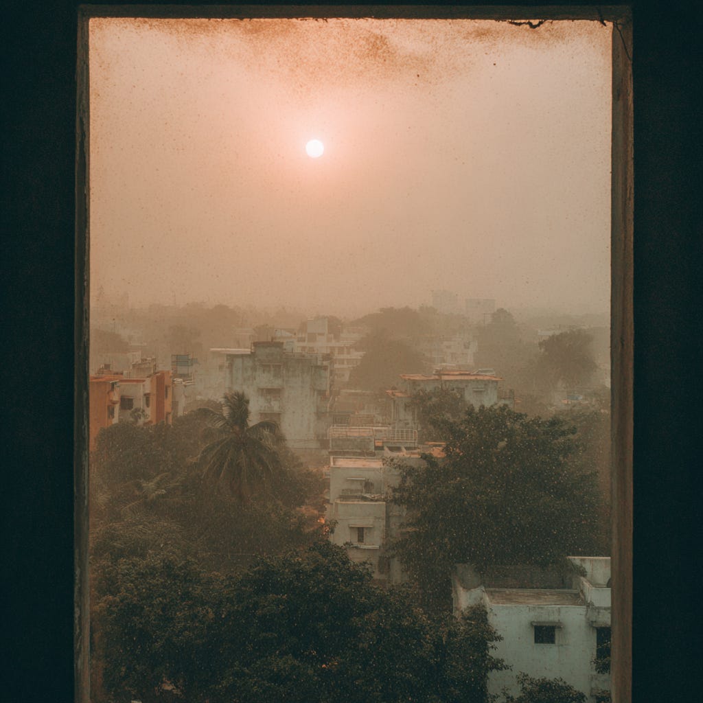 Not the sun itself. You can’t really see the sun anymore, not the way you used to. What you notice is the quality of the light: a diffuse, hazy glow that makes everything look like a photograph taken through a window smeared with Vaseline. Locals have started calling it vellai vanam. The white sky. Street vendors sell polarized sunglasses with a wink: “For the new India.” Children who were born after the deployment don’t know the sky was ever different.